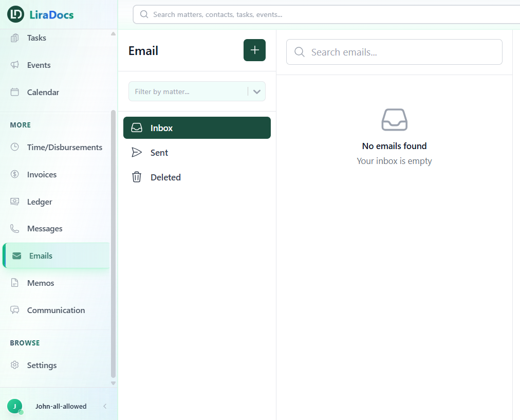 Liradocs ensures every email is easily accessible to your entire team, so you never have to search for important messages again. All emails are linked to the relevant matter, ensuring informed and seamless client communication.