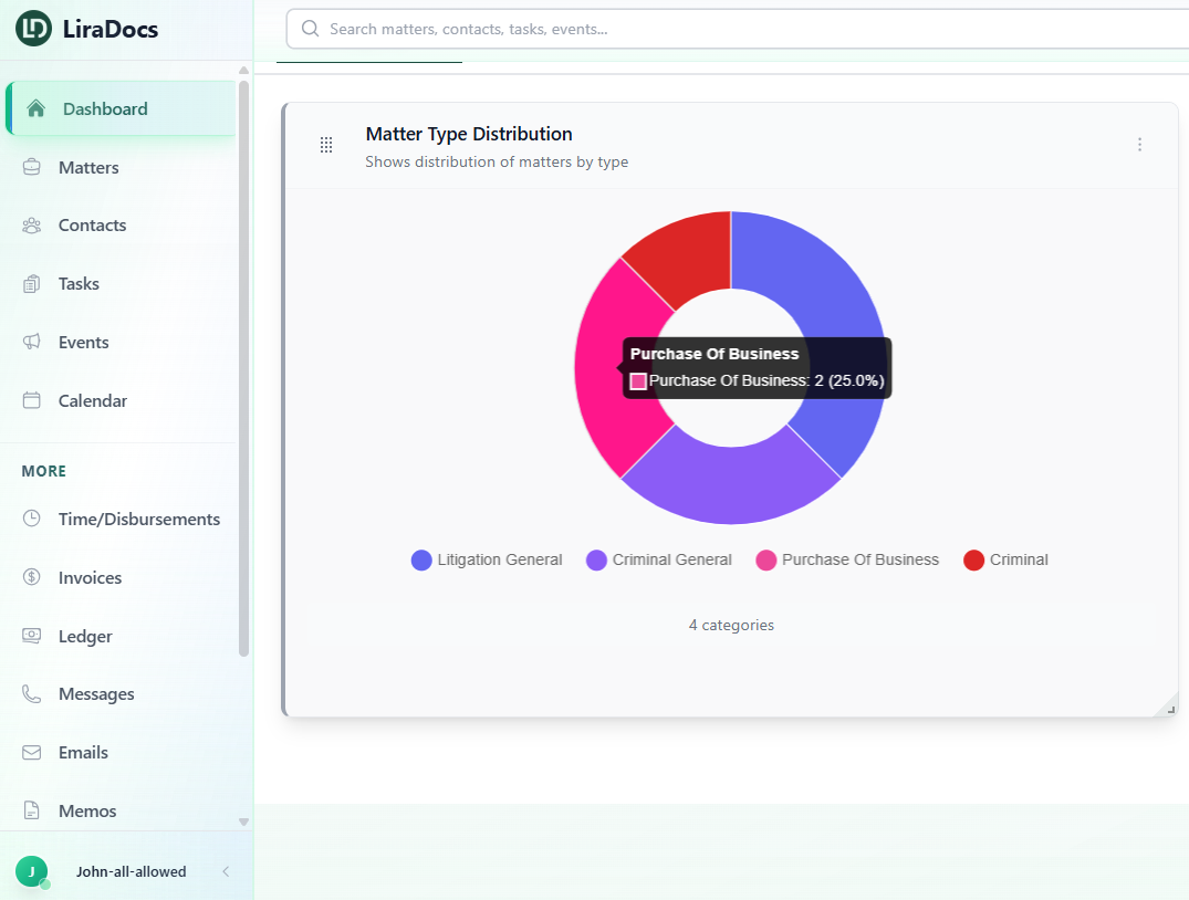 Liradocs transforms raw legal data into powerful insights that fuel smarter decisions, higher profitability, and stronger team performance. From tracking billable hours to revealing your most lucrative cases, our intelligent dashboards put critical metrics at your fingertips. Whether you’re optimizing resources, boosting compliance, or planning growth, Liradocs equips your firm with the clarity and confidence to lead with precision in a competitive legal landscape.