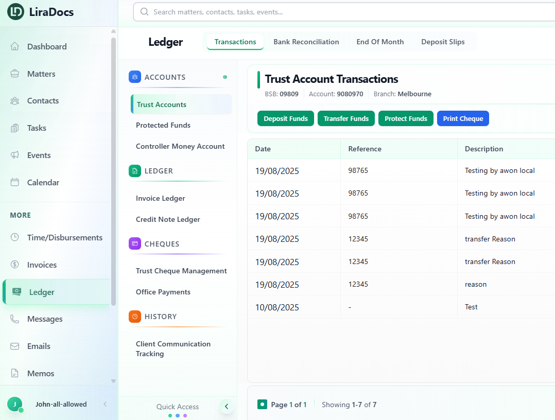 Liradocs’ legal accounting software eliminates manual bookkeeping errors and ensures compliance. Automatically reconcile trust transactions with your bank statements and generate detailed fiduciary reports for every transaction and client balance, keeping all records organized and accessible.